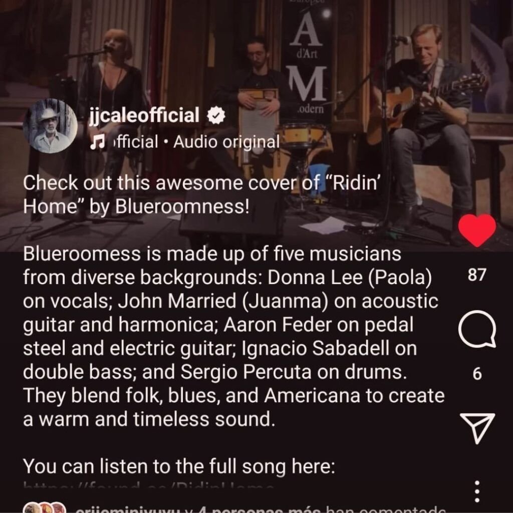 Our version of JJ Cale’s «Ridin’ Home» has been shared on his official Instagram account and social media. It’s a great honor!